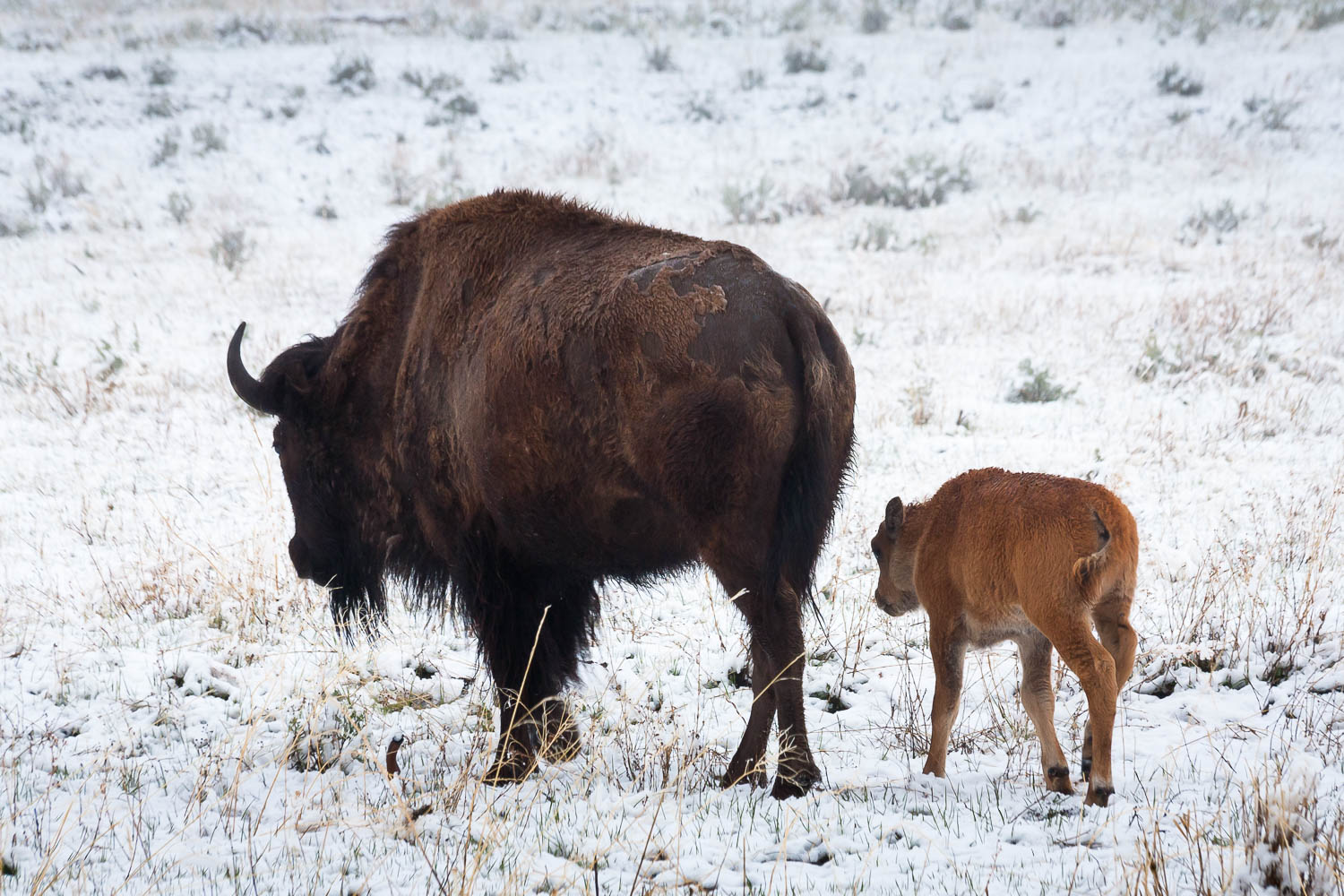 Bison and Calf in Snow